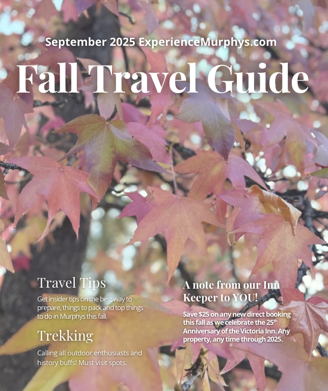 Whether you come for the golden vineyards, the historic charm, or the crisp mountain air, Murphys in the fall feels like California’s best-kept secret for a cozy autumn escape. Enjoy our Fall Travel Guide and reach out to schedule your perfect getaway! To make the best of your time with us during this special season, be sure to view the complete calendar of events from our friends at Calaveras Visitors Bureau as well as Visit Murphys.